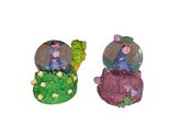 This product is a set of two Disney Winnie the Pooh Eeyore snow globe garden ornaments, each measuring 3 inches tall and 2-1/4 inches in diameter. Made in China in 1990 as part of the Disney franchise, these collectible items feature the beloved characters from the Winnie the Pooh story. Perfect for Disneyana collectors or fans of the Winnie the Pooh series, these snow globe garden ornaments would make a charming addition to any Disney-themed home decor.