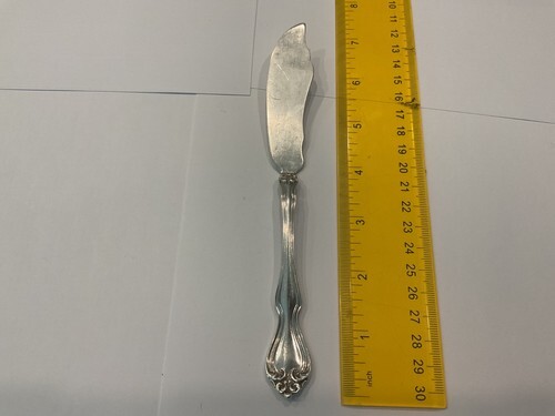 Sterling silver flat handle MASTER BUTTER 7 1/2" in the pattern MARTHA WASHINGTON BY DOMINICK HAFF. It is NOT monogrammed and is in excellent condition.