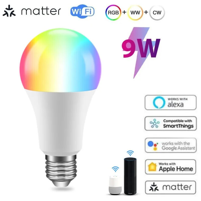 - Matter WiFi Smart Bulb Dimmable Led Light RGB E27 Base Voice Control Siri Alexa