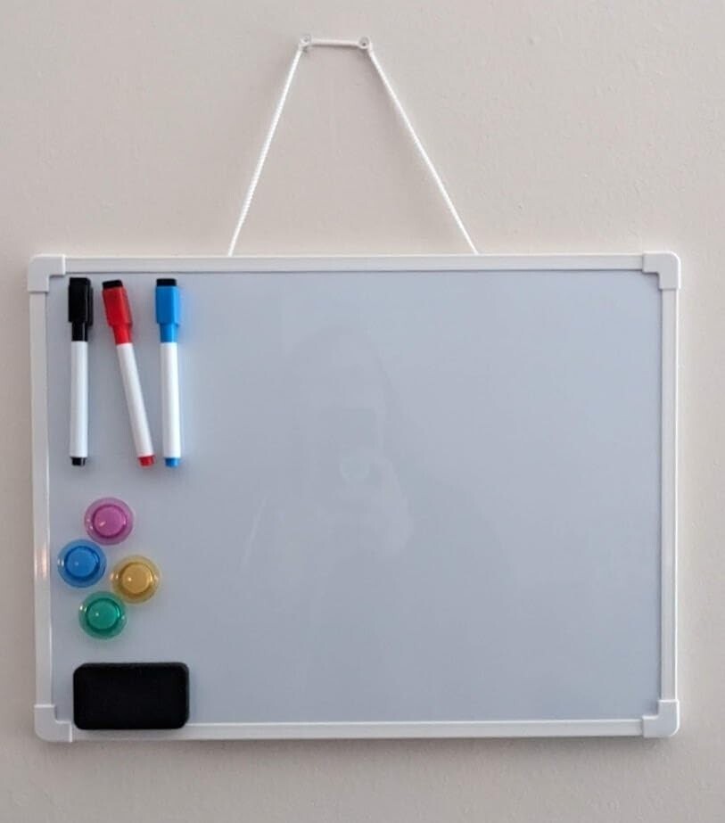 About this item PREMIUM DURABLE: MaxGear 16" x 12" double-sided Dry Erase Board is made of high-quality material, which is highly durable. The package includes a 12" x 16" board with a lanyard on the side, 3 different colors of markers with magnetic cap and built-in eraser, 4 magnets, 1 magnetic dry eraser, 4 pieces of double-sided tape and 2 sets of screws. DOUBLE-SIDED: Different from other mini whiteboards, MaxGear small double-sided magnetic whiteboard provides double blank sides, giving you plenty of room to write. More writing space allows you to have more projects going at the same time. It's convenient to use. Best for a Gift! HANGING ROPE DESIGN: For the convenience of use, our whiteboard has been upgraded. A hanging lanyard is added to the side of our whiteboard, which can be hung directly on the wall or shelf. Also, you can install it easily with double-sided tapes, no drilling is required even on clean surfaces. The 2 installation methods allow you to hang it horizontally or vertically as you like. EASY TO WRITE and CLEAN: This small magnetic dry erase whiteboard comes with smooth and scratch-resistant writing surfaces, so that you can write smoothly, and is easy to wipe clean without stains. After use, the marker can be hung directly on the whiteboard surface by the magnetic strip on the pen cap. Very convenient. PORTABLE MULTI-USE: This 16"x12" dry-erase board for students/teachers is portable and lightweight. Perfect size makes it easy to store and carry. It's reusable, a good choice for home, school, office, fridge, locker and homeschool, etc. Best small whiteboard for for planning, drawing, memos, to-Do List and more.