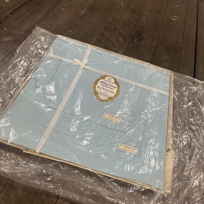 May Company Irish Linen Lt Blue Napkins Tablecloth Set Blue NOS Vtg