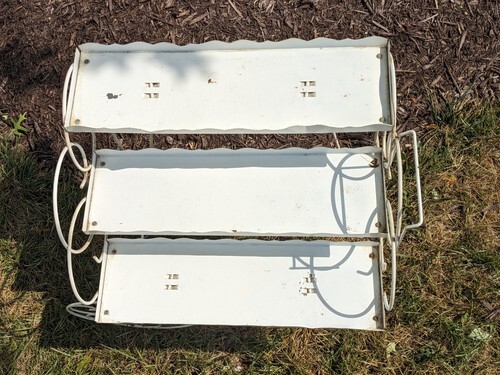 A vendre est un carton de fleur de fleur en metal MCM a 3 usages rouges de stand de support de stand de support. Le chariot sera expedie a plat avec les vis d'etagere retirees.