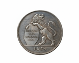 Esplora la storia con questa squisita medaglia fantasy restrike Ludovico I di Baviera 1831. Questo oggetto da collezione simile a una prova presenta il busto dettagliato del re Ludovico I, che regno dal 1825 al 1848, un'epoca di significativa fioritura culturale e architettonica in Baviera. Il rovescio mostra un maestoso leone con il motto "GERECHT UND BEHARRLICH" (Giusto e persistente) e l'anno di spicco 1831. Questa bellissima medaglia d'arte cattura l'essenza dell'arte numismatica tedesca del XIX secolo, offrendo un pezzo tangibile di storia senza essere una valuta circolante originale. Un vero oggetto da collezione e un gettone unico per ogni appassionato di pezzi storici commemorativi. Perfetto per l'esposizione, questo vincolo storico si rivolge sia ai collezionisti numismatici che d'arte, aggiungendo un fascino distintivo a qualsiasi collezione. Parole chiave: restrizione, da collezione, medaglia, storico, commemorativo, numismatico, oggetto da collezione, gettone, proof-like, opera d'arte, medaglia fantasy, storia tedesca, bavarese.