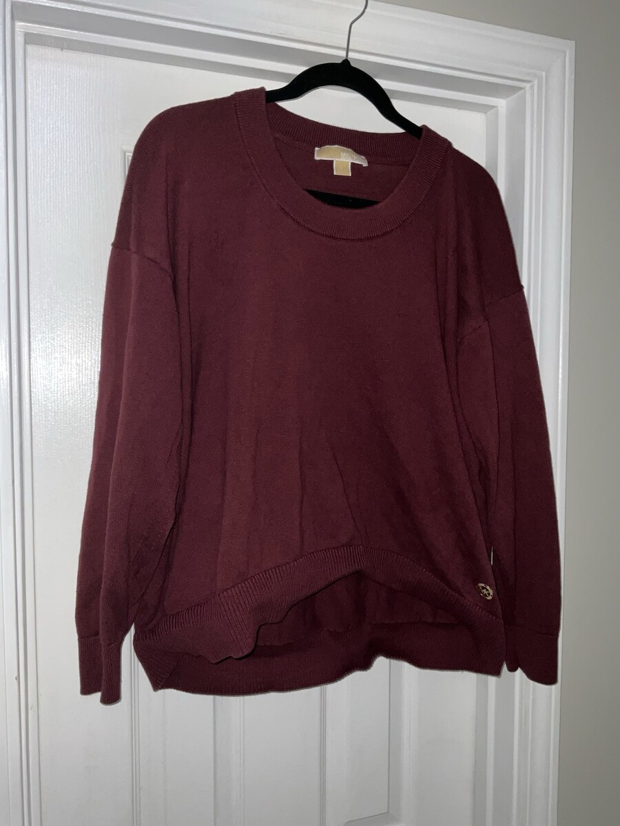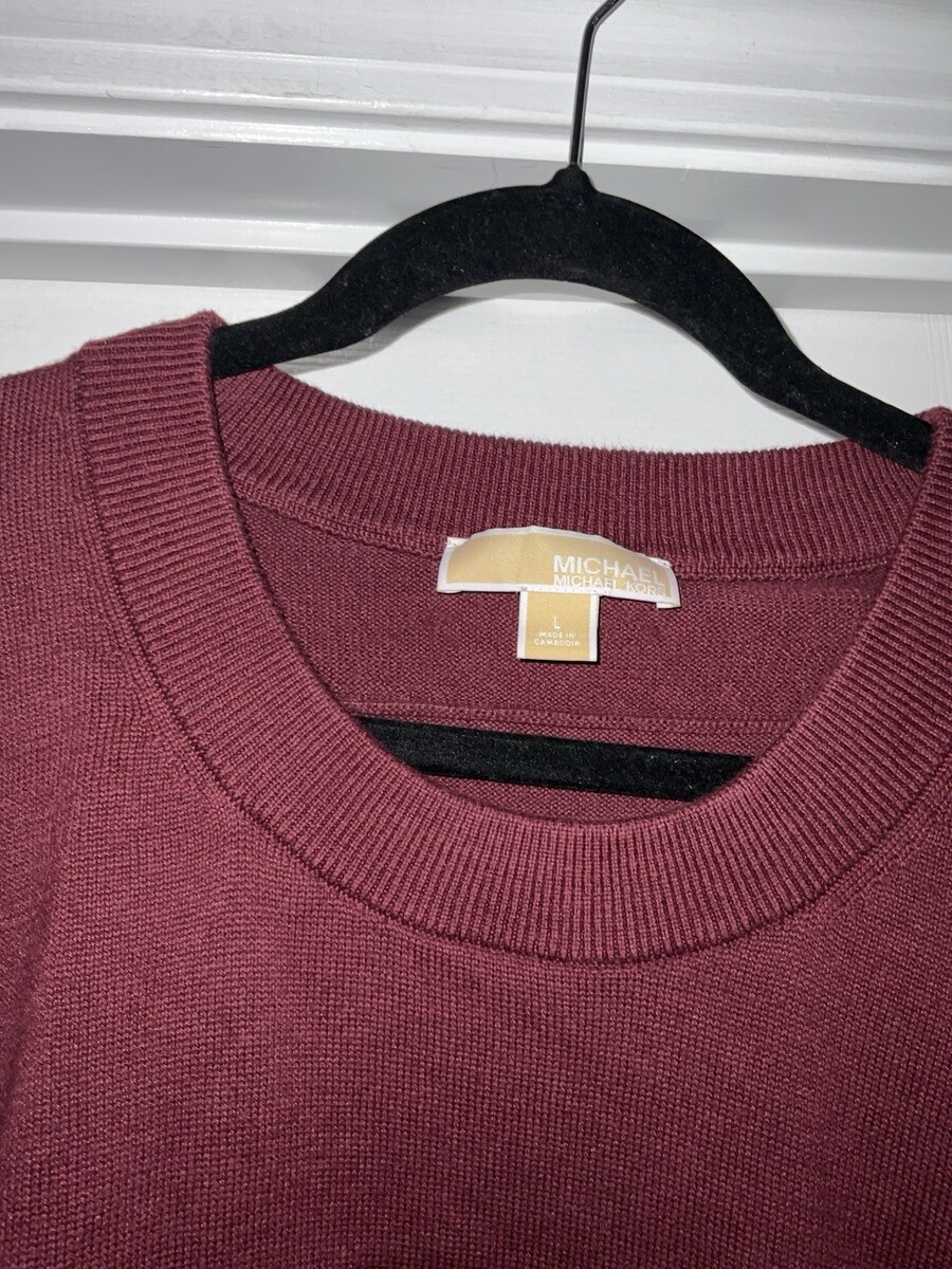 Michael Kors Merlot Lightweight Sweater Gold Buttons Large