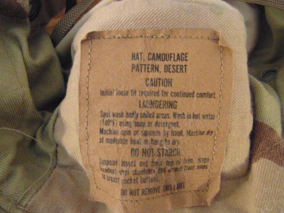 Primary image for Military Surplus Desert Pattern Camo Hat Missing Size Tag Writing On Inside