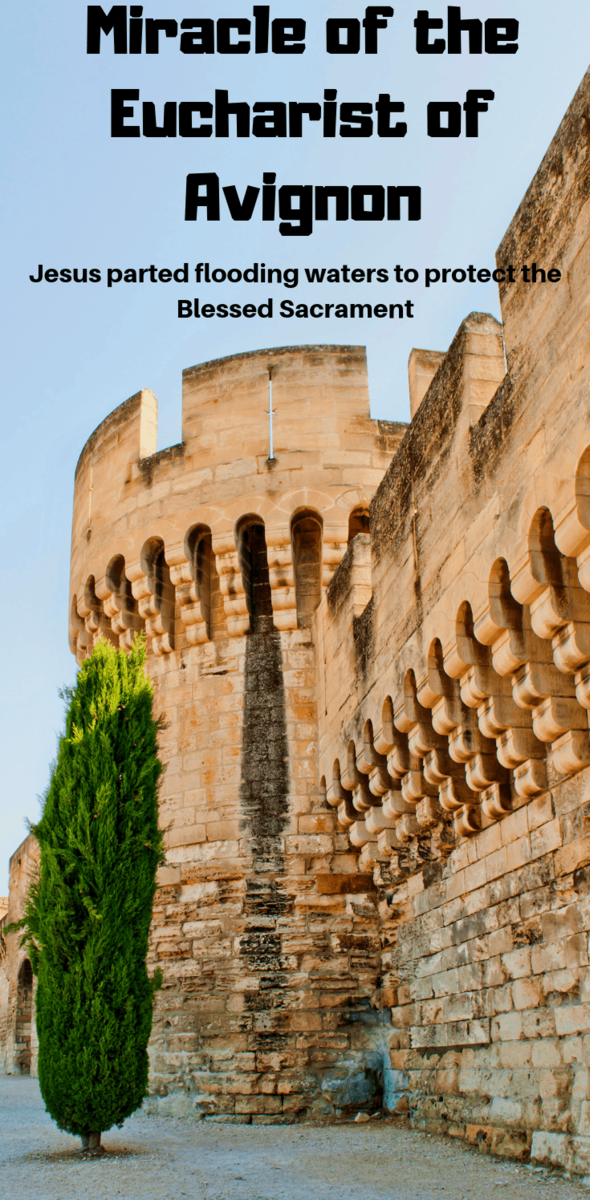 Miracles of the Eucharist - Avignon, 1433 - The waters parted during a flood to protect the Monstrance containing the Consecrated Hosts - reminiscent of Moses parting the Red Sea.