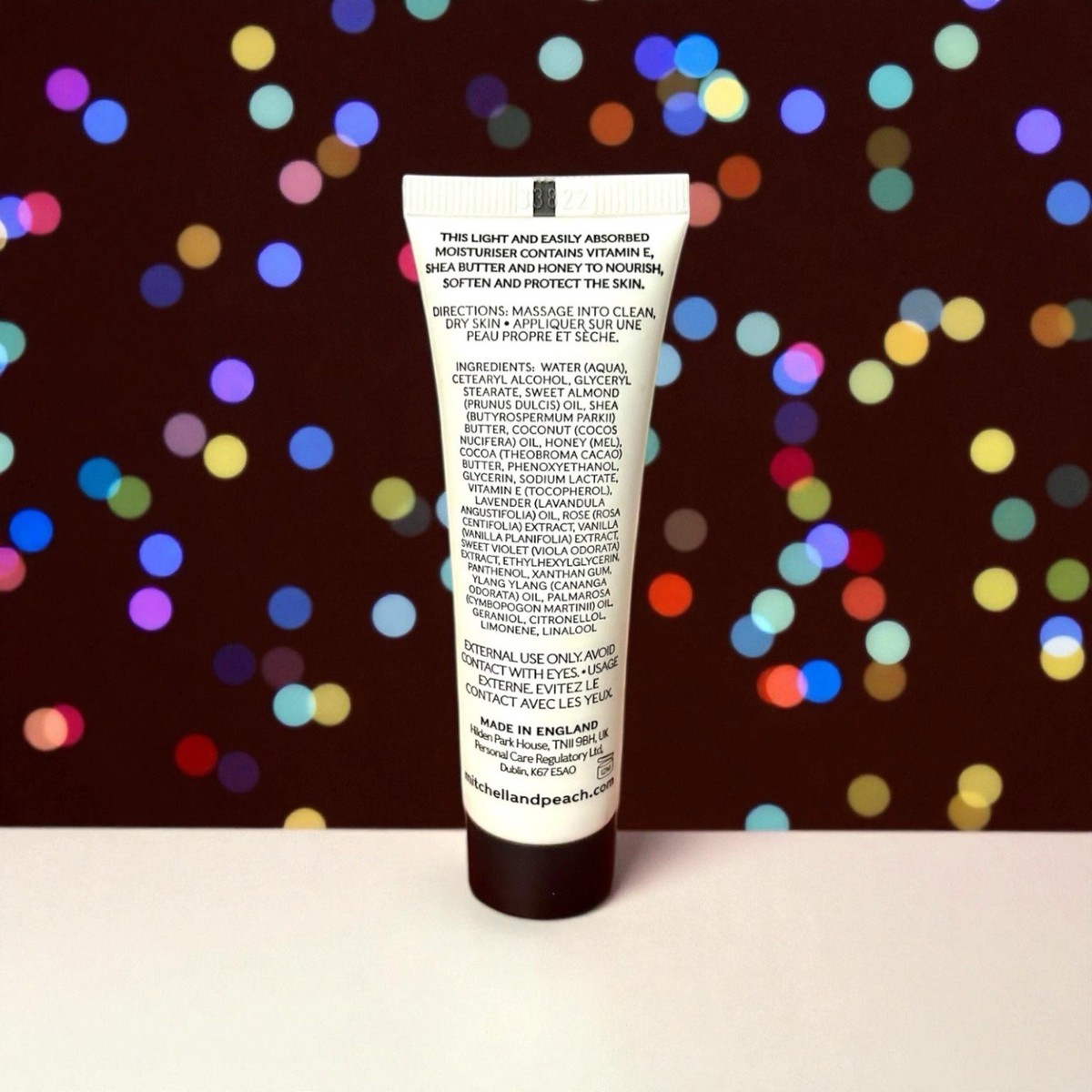 An ultra-light, luxurious body souffle infused with English honey, organic cocoa, and skin-softening