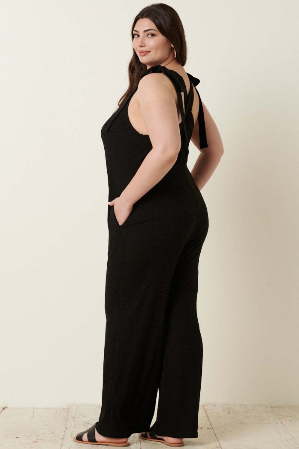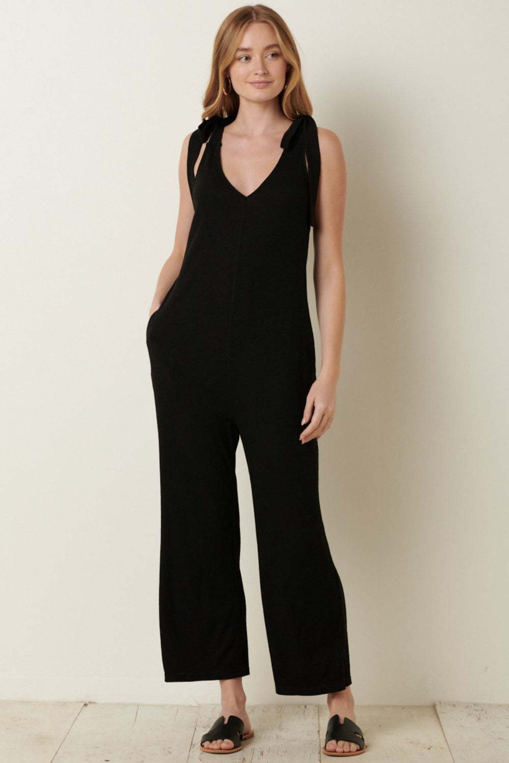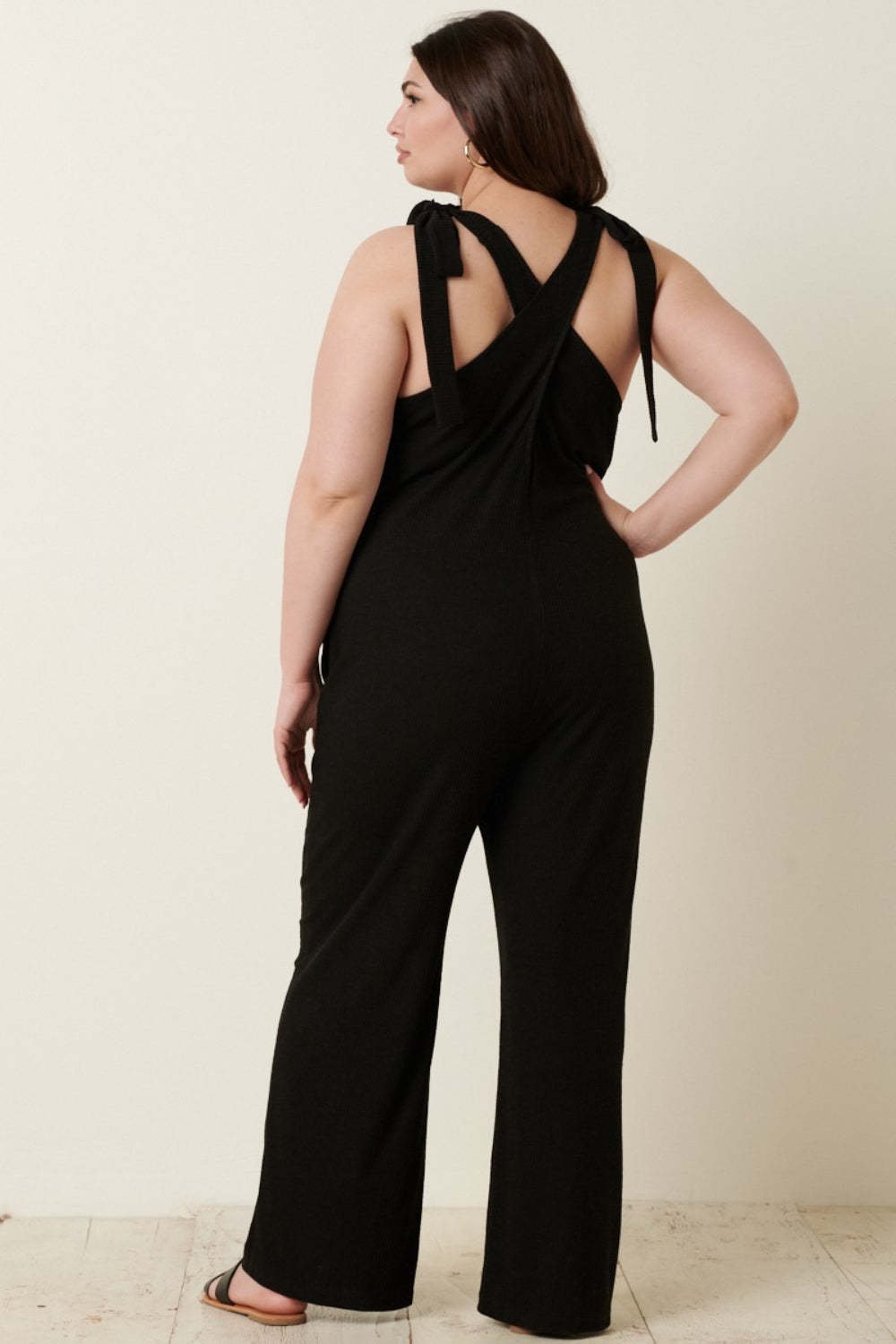 - Mittoshop Rib Knit V-Neck Cross Back Jumpsuit