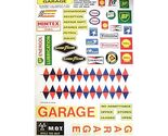 MODEL GARAGE STICKER SET 39 ASSORTED POSTERS SIGNS INCLUDING ESSO, SHELL, GOOD Y