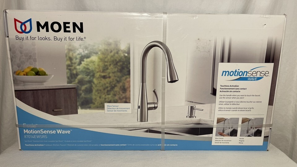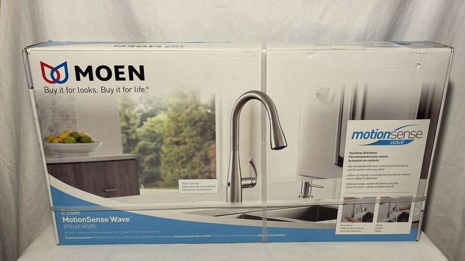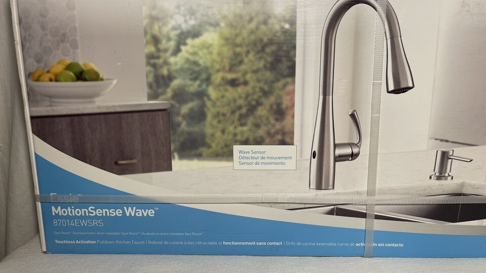 Moen Essie 87014EWSRS Kitchen Faucet Motion Sense Wave Touchless Faucet Stainles. Condition is New. Shipped with UPS Ground.