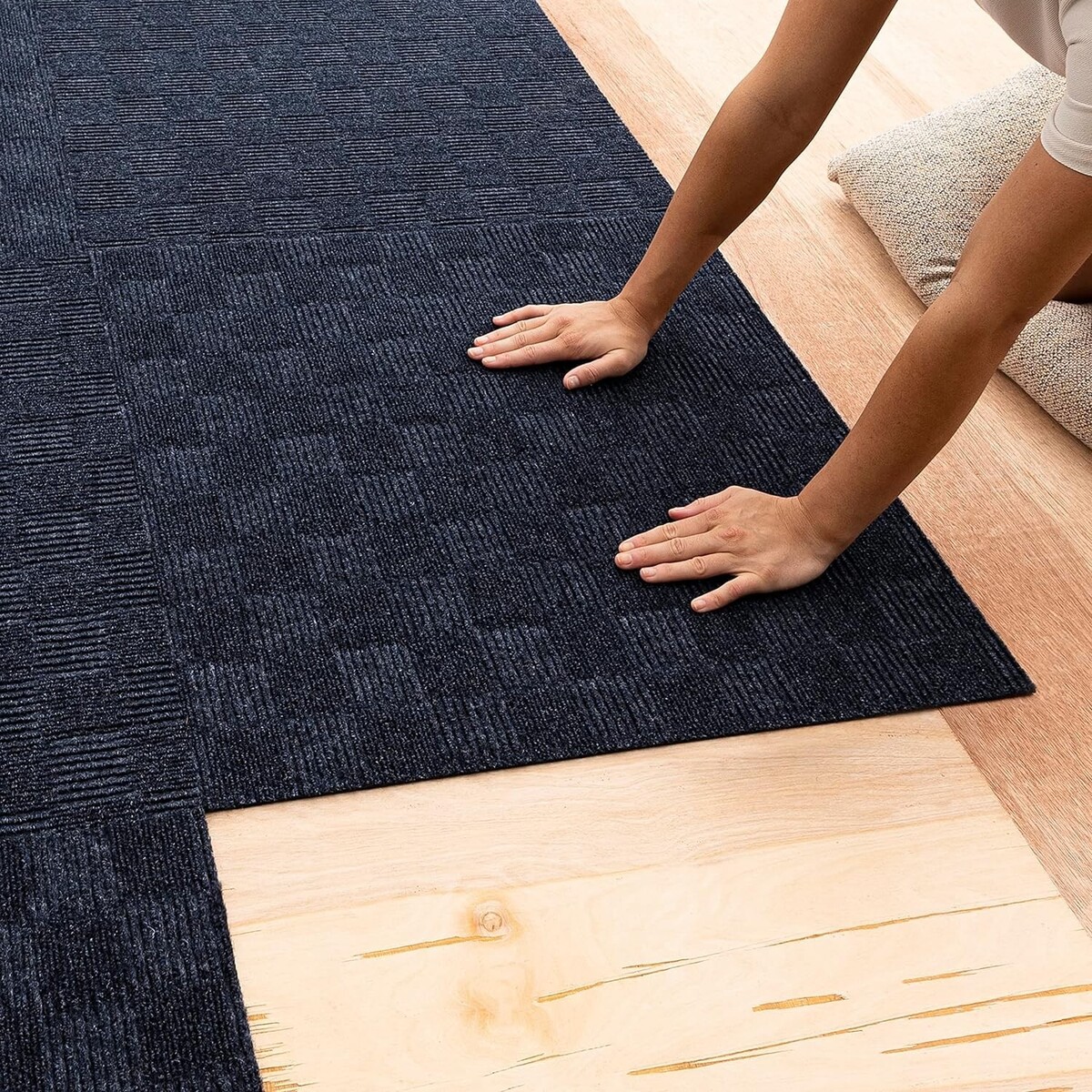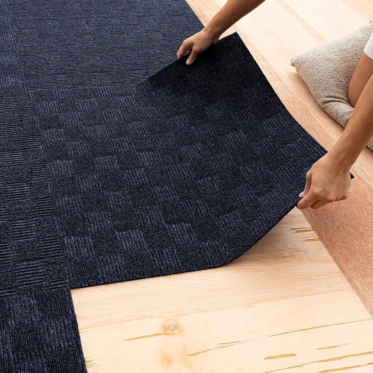 Mohawk Home 24" x 24" Indoor/Outdoor 0.25" Pile Height, Peel and Stick Carpet Tile, Blue Polyester, (15 Tiles) (60 sqft/Box)
