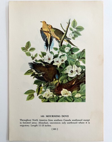 Mourning Dove 1950 Lithograph Art Print Audubon Bird First Edition DWU14D