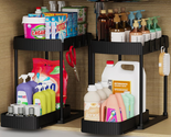 Multi-Purpose Pull-Out Storage Organizers, under Sink/Cabinet Organizers and Storage for Bathroom Kitchen, Black, 12.8 Inches, 2 Packs