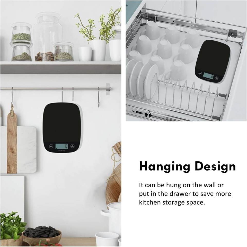 Stylish Hanging Design: The sleek design allows you to accent your home kitchen with a modern fashion touch and amazing sight, or effortlessly hang the scale stow as a decoration, Its slim design also makes it easy to store in any cabinet while saving space for the rest of your kitchen essentials.