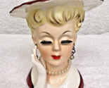 Primary image for OLD Head Vase Woman w Gloved Hand Pearls and Dangle Earrings Original Tag 4 3/8"