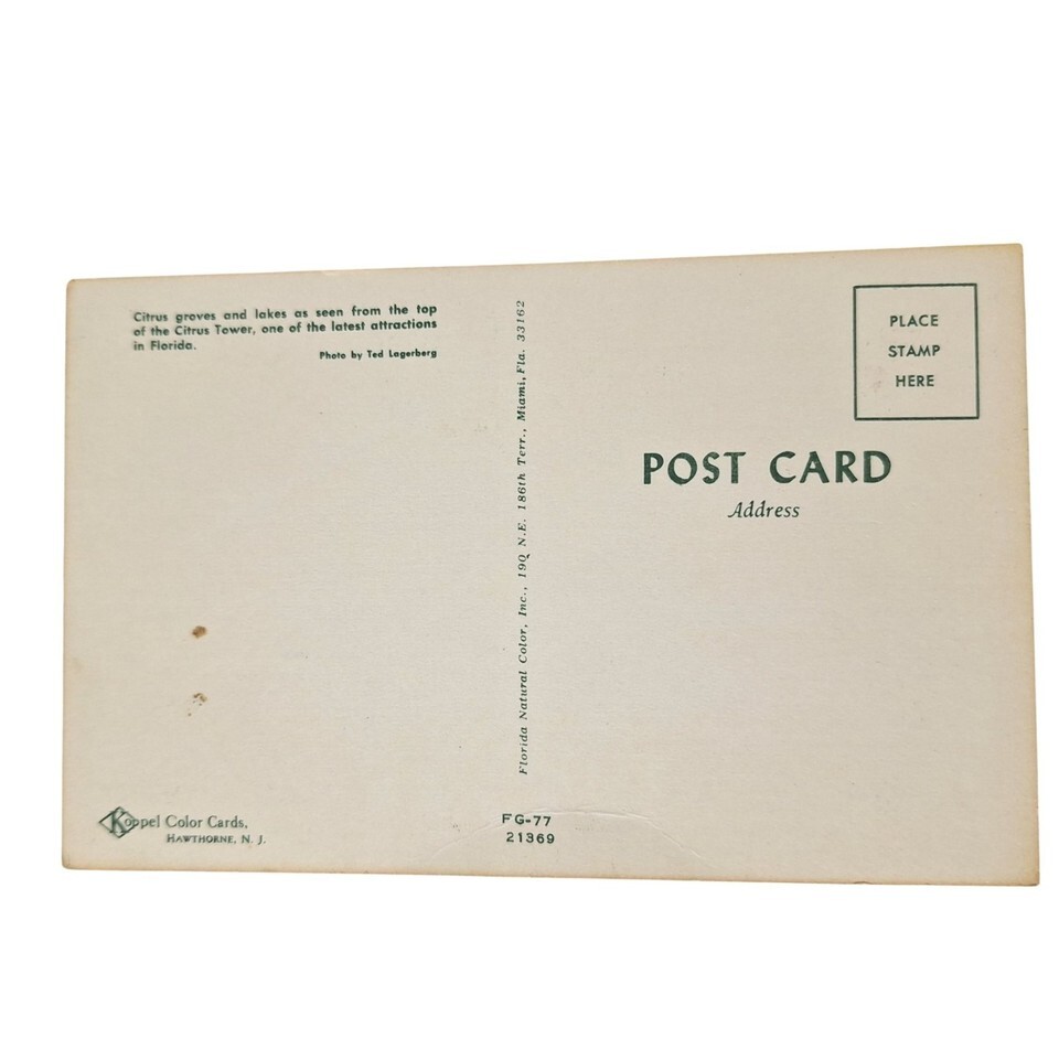 Postcard Citrus Groves Citrus Tower Lakes Aerial View Clermont Florida Chrome Condition is consistent with an old or antique paper postcard. It may have corner bumps, creases, ink stains, pencil or pen markings, an old smell, etc 193