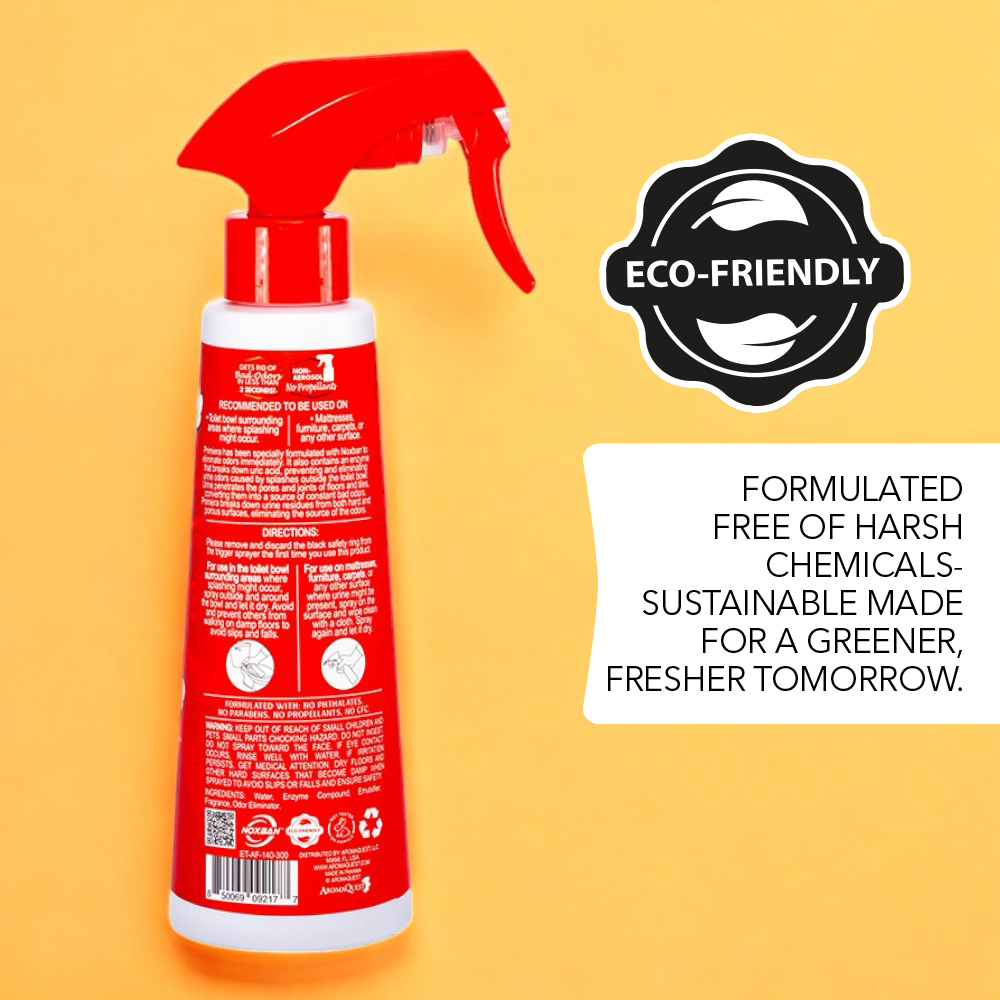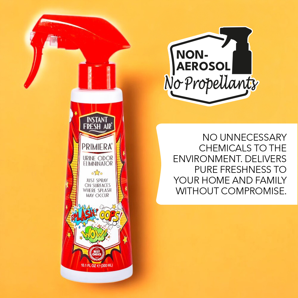 SAY GOODBYE TO URINE ODORS WITH PRIMIERA —INSTANT FRESHNESS FOR BATHROOMS, MATTRESSES, AND BEYOND.