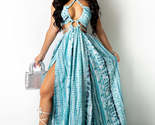 This sleeveless maxi dress features a slim A-line silhouette with a halter neckline and spaghetti straps, crafted from a slight stretch polyester and spandex knit fabric. Designed with elegant hollow-out details and a floor-length split, it offers a refined yet alluring look perfect for summer evenings. The empire waistline and pullover closure ensure a comfortable, flattering fit, making it an ideal choice for sophisticated, stylish occasions.