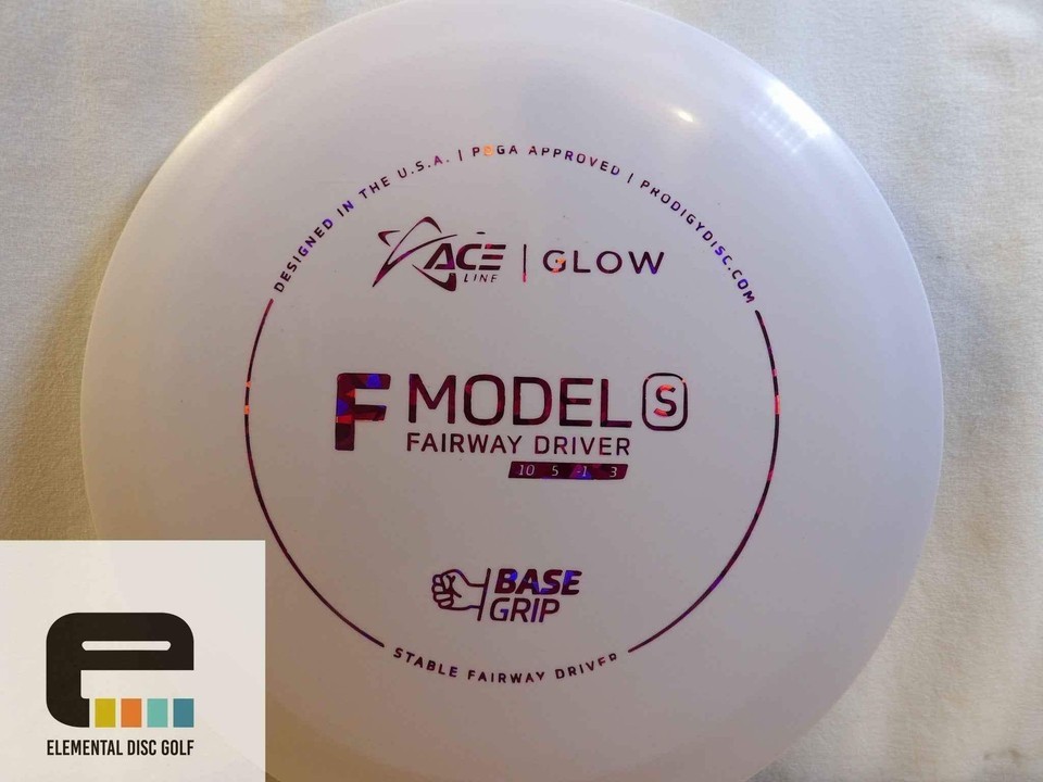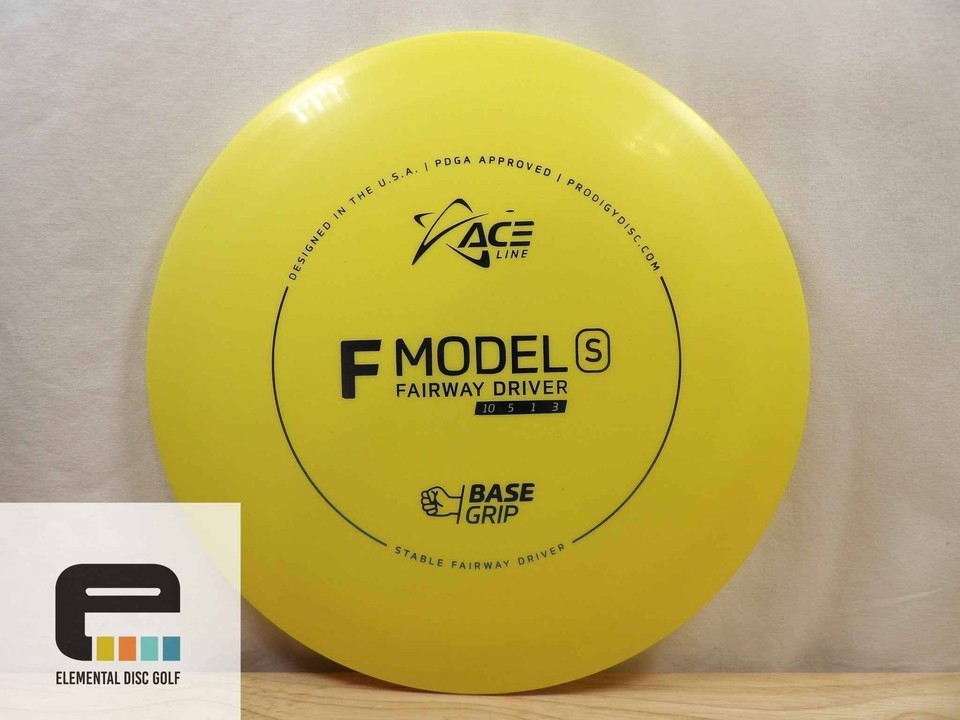 Prodigy Base Grip F Model S The F Model S has a stable flight and is ready to navigate any fairway with pinpoint accuracy and incredible control. This disc will be perfect for learning how to throw hyzerflip shots that fly straight as an arrow. Thrown hard with a slight hyzer angle, the disc will pop up to flat and ride straight with a mild fade. Players can also get a slight turn by throwing it flat. Just pick your line and hit the target. F Model discs are a great introduction into drivers. They're made for controlled, accurate shots at a long distance and have a smaller rim for a comfortable grip. F Model discs are a great introduction into drivers. They're made for controlled, accurate shots at a long distance and have a smaller rim for a comfortable grip. Flight #'s: 10 / 5 / 1 / 3 (description exceeds maximum possible length)