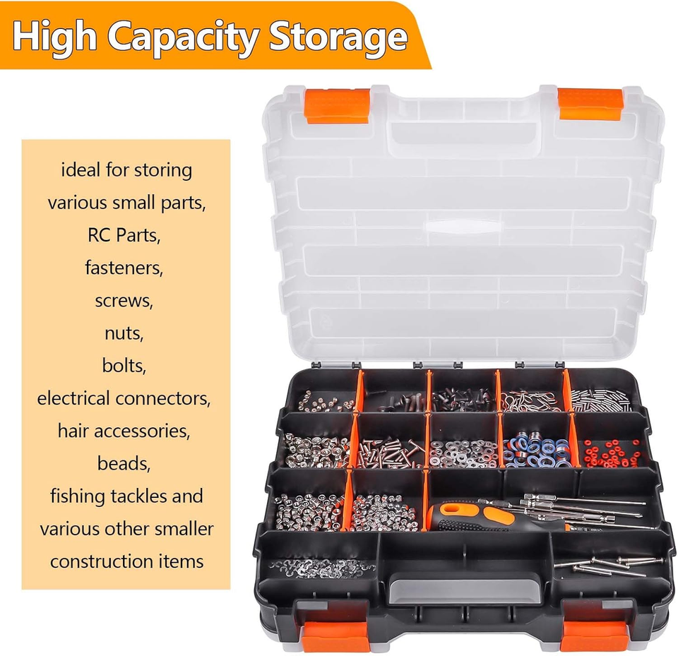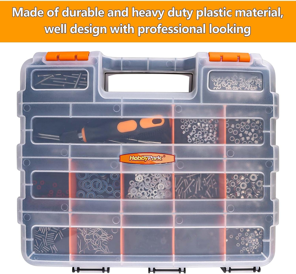 ?Portable Design: Equipped with secure latches and a convenient carrying handle, this hardware organizer ensures that your items remain intact during transport. The transparent design allows for easy visibility, making it simple to locate the items you need, whether at home or on the go.
