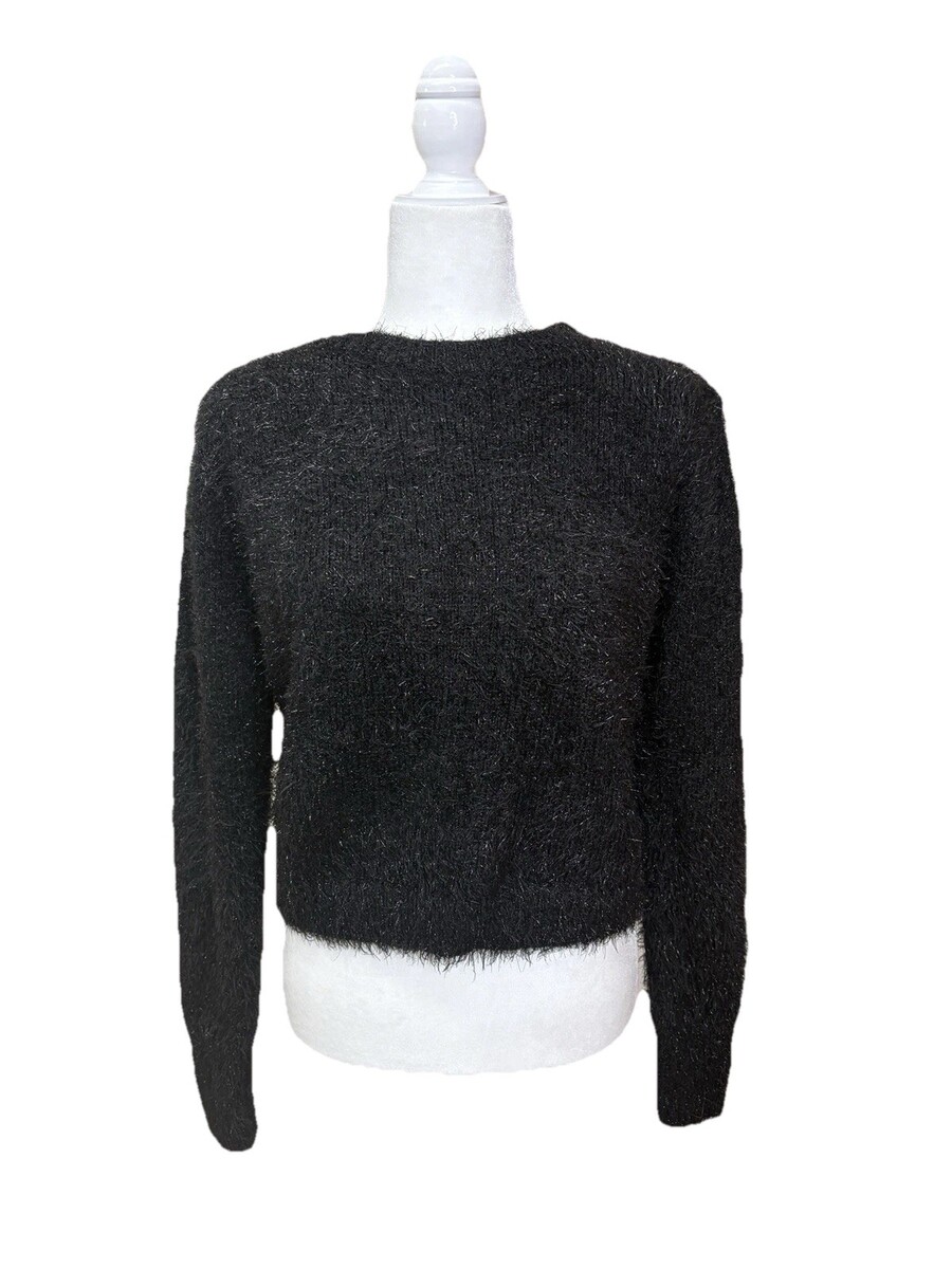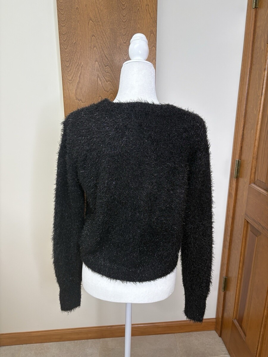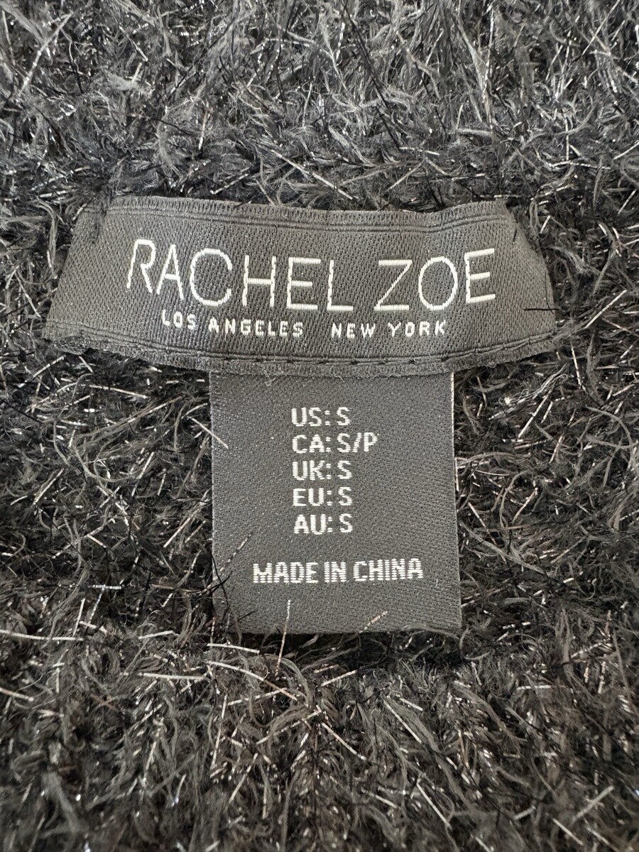 - Rachel Zoe Black Fuzzy Silver Metallic Sweater Size Small Holiday NYE Cropped