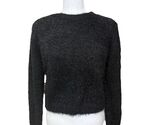 Rachel Zoe Black Fuzzy Silver Metallic Sweater Size Small Holiday NYE Cropped