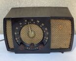 The Zenith Model H723Z1 Antique Bakelite AM / FM Tube Radio from the 1950's is a rare and collectible piece for radio enthusiasts. This vintage radio features a unique design with a Bakelite chassis, showcasing the craftsmanship and style of that era. With its AM/FM capabilities and tube technology, this Zenith radio offers a glimpse into the past and serves as a valuable addition to any collection of vintage radios or memorabilia from the 1950s. ****This unit does power on (see Video), I was unable to pick up any stations though.Knob scrolls easily in one direction but needs assistance to scroll the other direction****