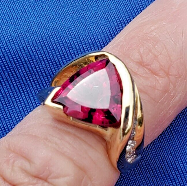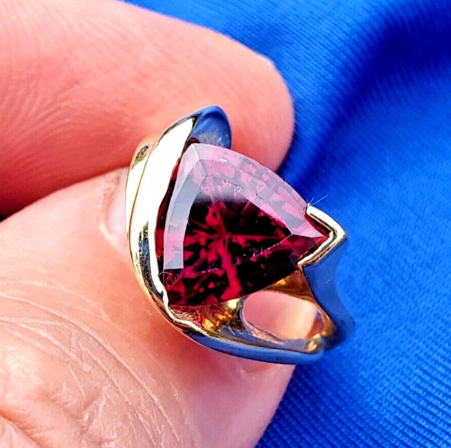 GARNET DIAMOND STATEMENT ENGAGEMENT RING 14K SOLID GOLD.