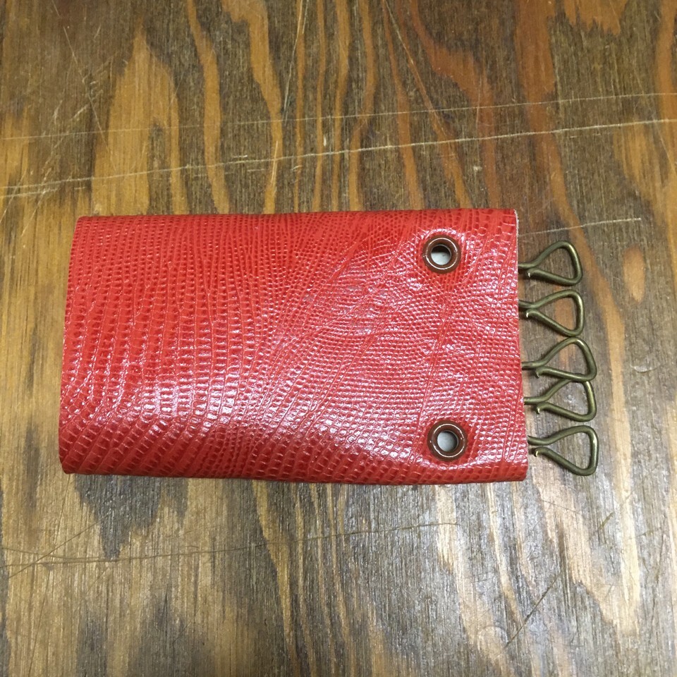 - Red cowhide key holder vintage key caddy with key hooks snap button closure