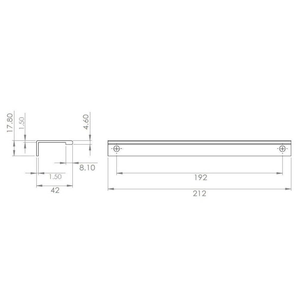 Richelieu Hardware Lincoln Collection 7-9/16 Inch Center to Center Contemporary Cabinet Pull Elevate the look of your kitchen, bathroom, or furniture with the sleek and modern Richelieu Hardware Lincoln Cabinet Pull Collection. Designed for a streamlined and urban aesthetic, this contemporary edge pull handle is both stylish and functional. Product Details: Type: Modern Cabinet and Drawer Edge Pull Handle Application: Ideal for kitchen, bathroom, and furniture Center to Center Measurement: 7-9/16 Inch (192 mm) - This is the distance between the drill holes for installation Dimensions: Length: 8-11/32 Inch (212 mm) - Measurement from left to right Width: 1-21/32 Inch (18 mm) - Measurement from top to bottom Projection: 1-21/32 Inch (42 mm) - Measurement from front to back Material: Made of high-quality Aluminum Installation: Sold per unit with mounting hardware included (Wood screws) for easy installation Key Features: Streamlined and Urban Look: Perfect for giving your kitchen or bathroom a modern and clean appearance. Durable Construction: Made from high-quality aluminum, ensuring long-lasting durability and a sleek finish. Easy Installation: Comes with all necessary mounting hardware, including wood screws, to ensure a hassle-free setup. Finish and Material: Finish: Adds a touch of elegance and modernity to any cabinet or drawer. Material: Aluminum - Known for its strength, durability, and lightweight properties. Usage: Versatile Application: Suitable for use in various settings, including kitchens, bathrooms, and on furniture pieces, making it a versatile choice for any home improvement project. Upgrade your cabinetry with the Richelieu Hardware Lincoln Cabinet Pull Collection, and enjoy a perfect blend of style and functionality. Its contemporary design and quality construction make it an excellent choice for modern interiors. (description exceeds maximum possible length)