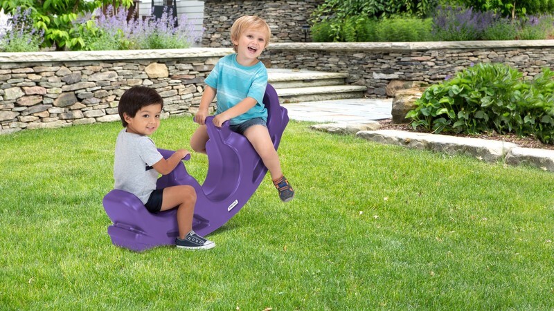 The Simplay3 Rock Roll Teeter is a modern take on a classic toy with a Simplay3 twist. Two children can use it as a seesaw, but flip it upside down and any number of kids can use it as tunnel for imaginative creative play. This exciting and modern take on a classic toddler seesaw has a cheery, bright finish, comfortable seats with high backs, child-friendly rounded edges, and easy-grip handles for extra security. Seesaw rock and spin the day away outside in the backyard playground during the warm months, and move inside when the weather turns colder for active play indoors. Created to make your life easier, this rocking play equipment is ready to go right out of the box with no assembly, and is made from a one-piece, heavy-duty plastic construction built to withstand all weather and the toughest of play.