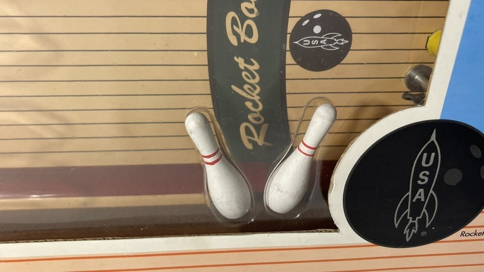 Rocket Bowling A Classic Tin Action Toy Vintage Tin Toy Complete Set. Condition is Used. Shipped with UPS Ground.