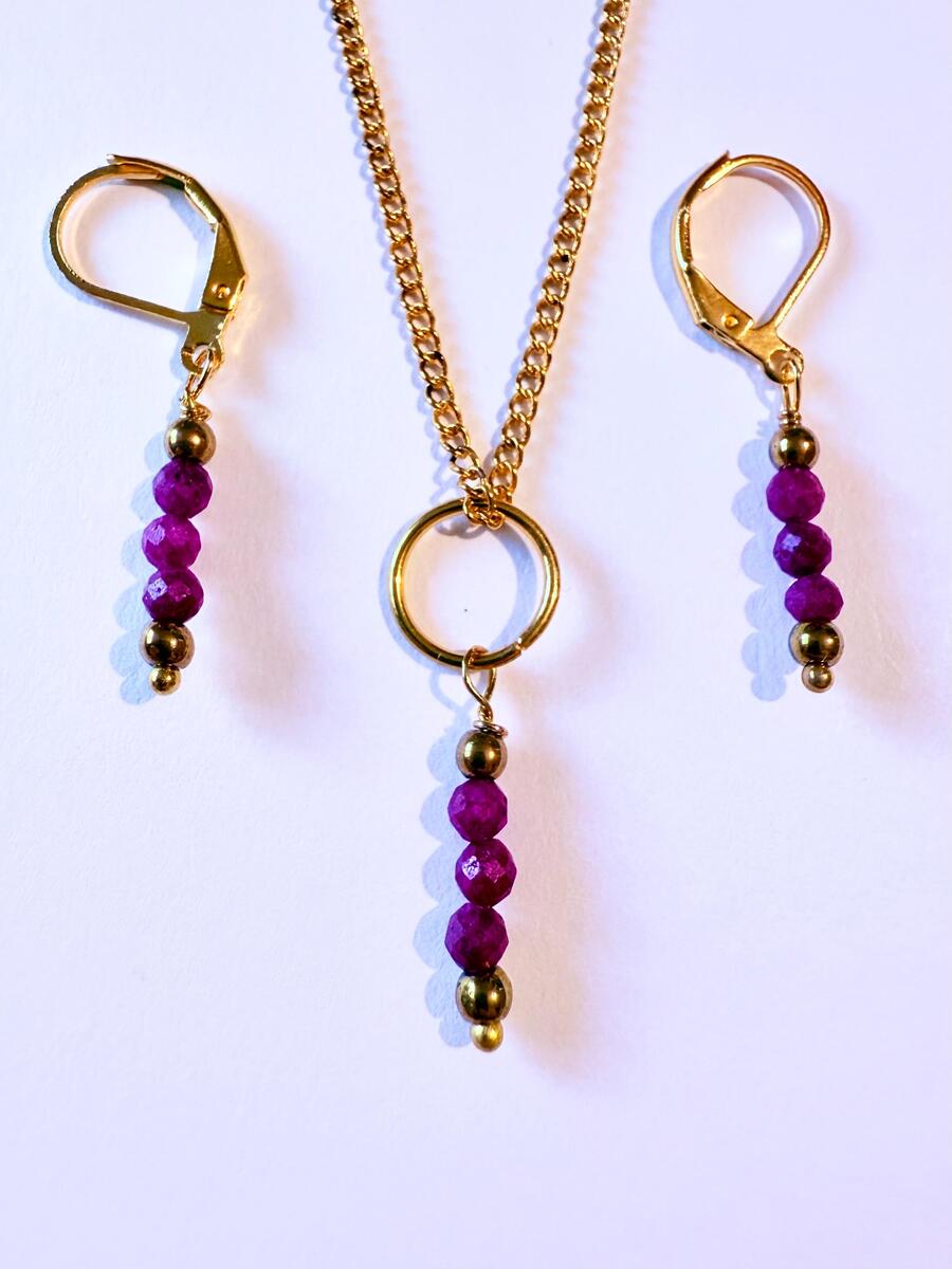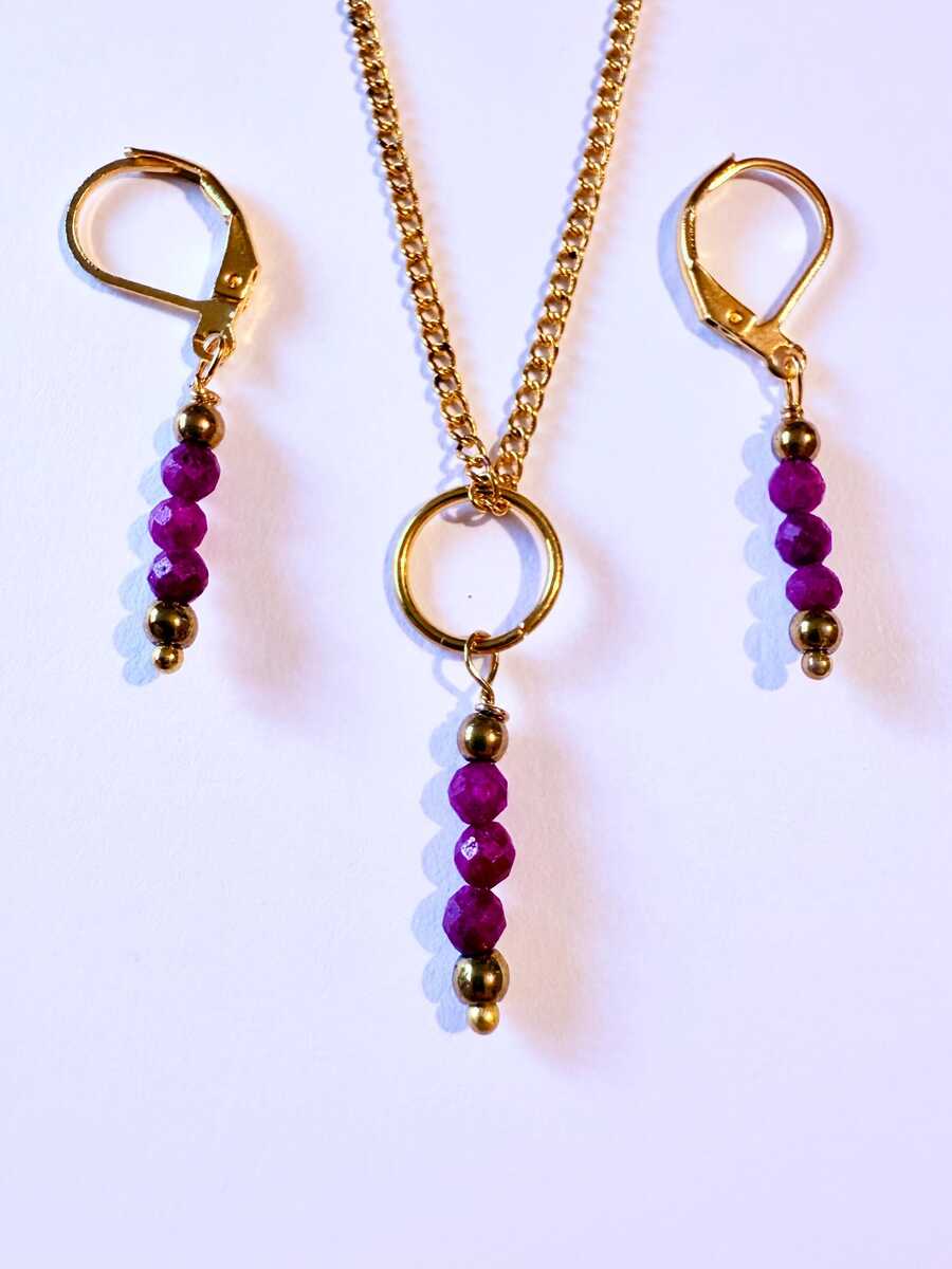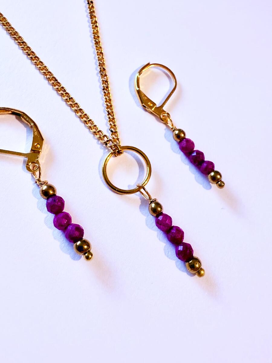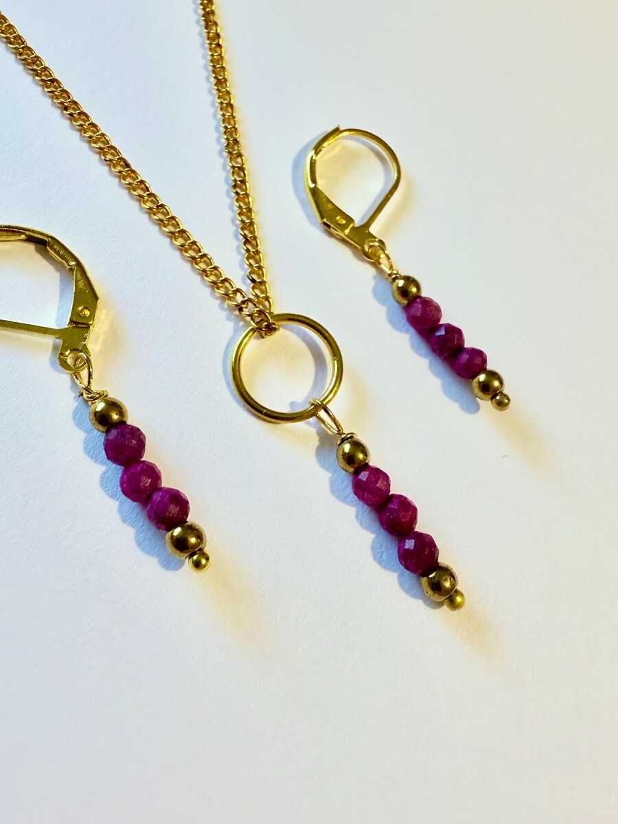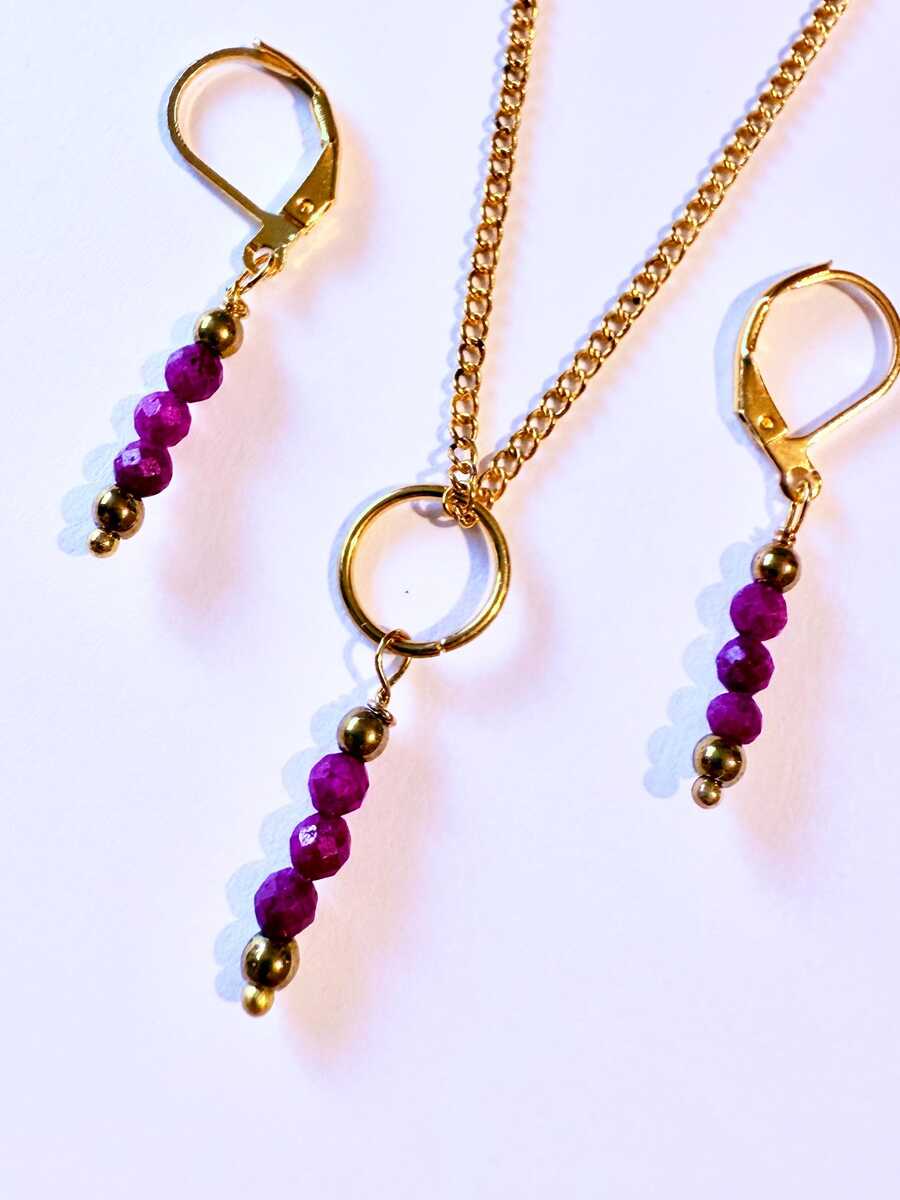 Ruby gold jewelry set necklace earrings Victorian ruby red burgundy jewelry set Boho set gold set minimalist set Ruby jewelry ruby earrings