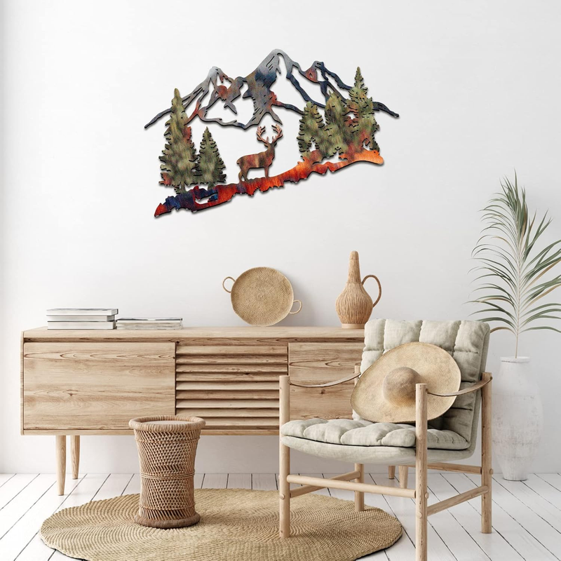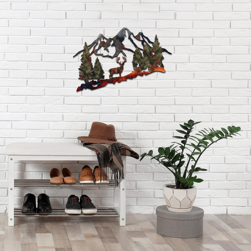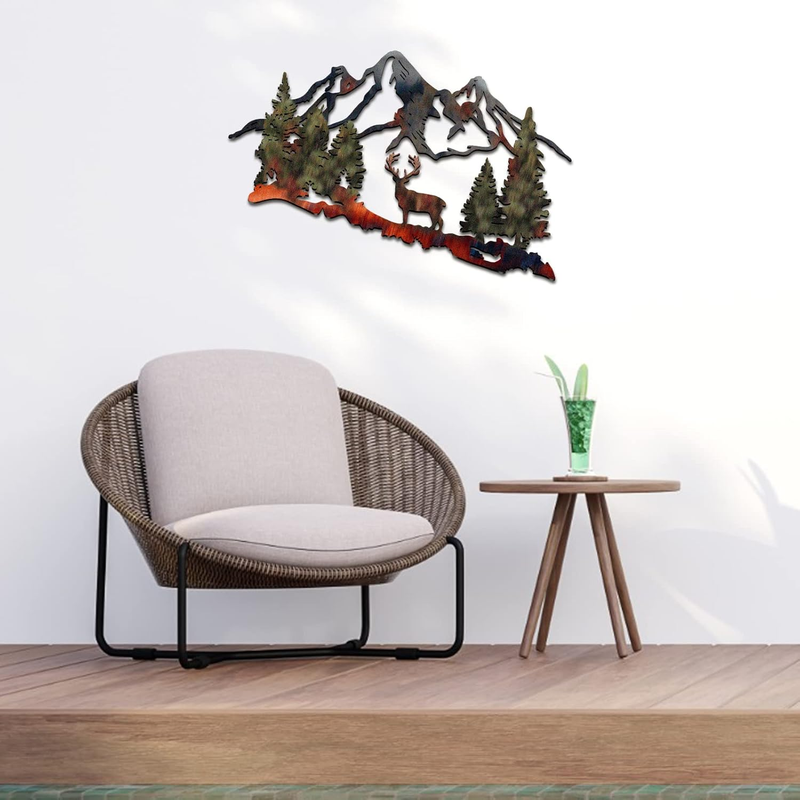 Rustic Metal Forest Deer Wall Art Mountain Cabin Decor Rustic Animal Hunting Dec