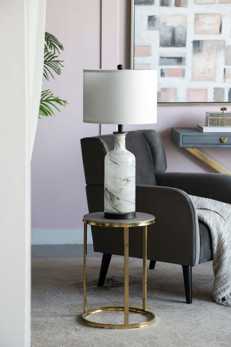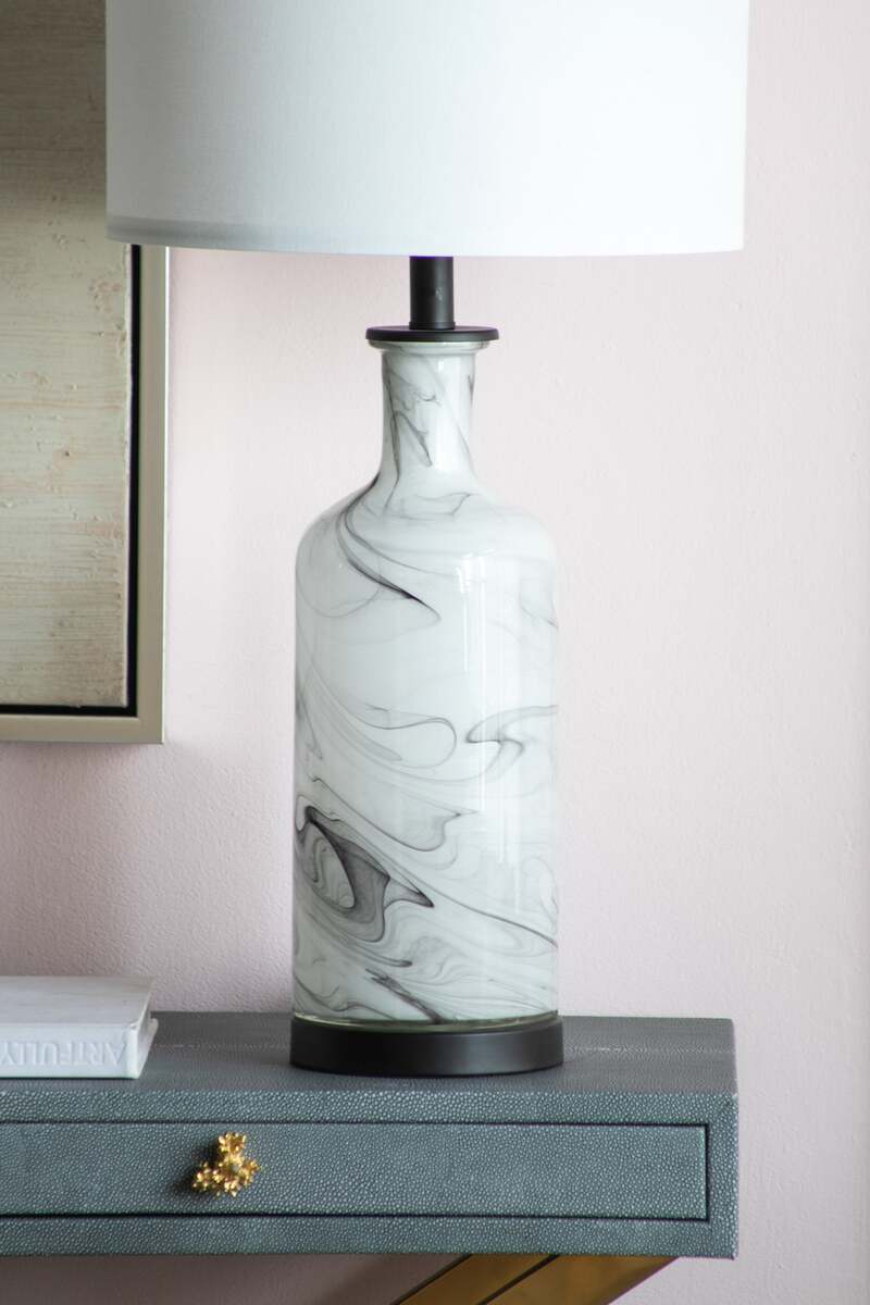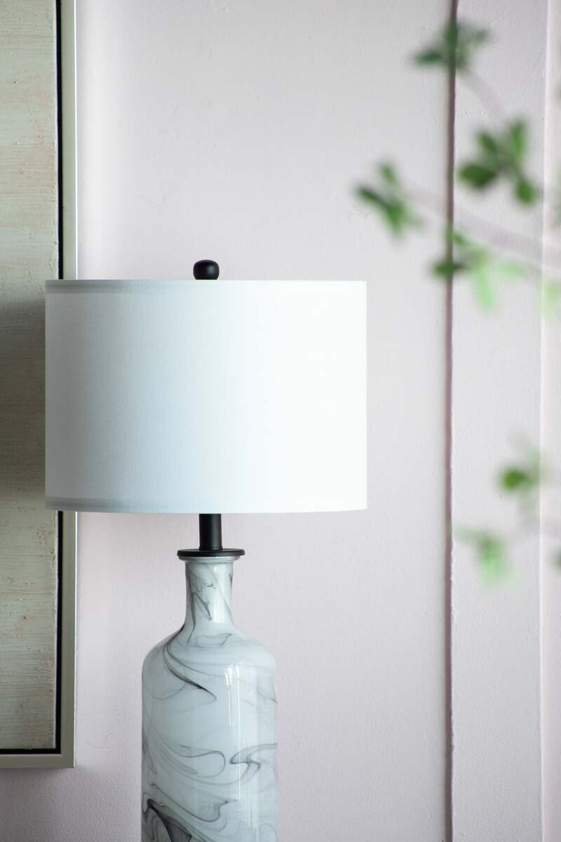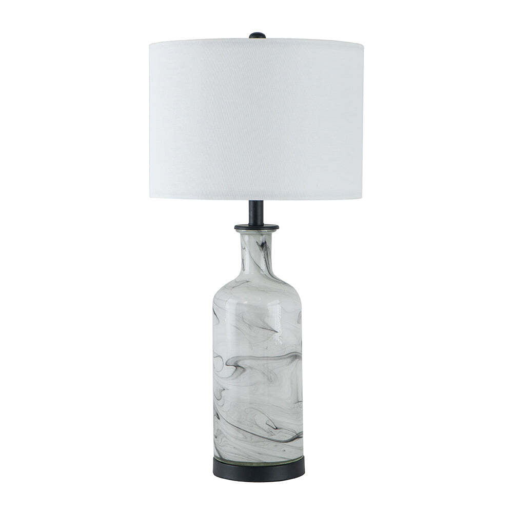- Sarris Modern Gray White Swirl Glass Table Lamp Linen Shade