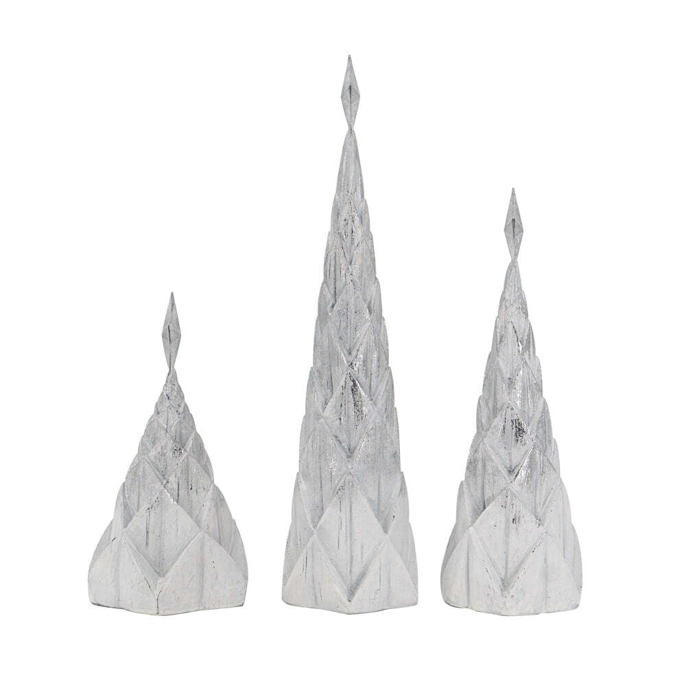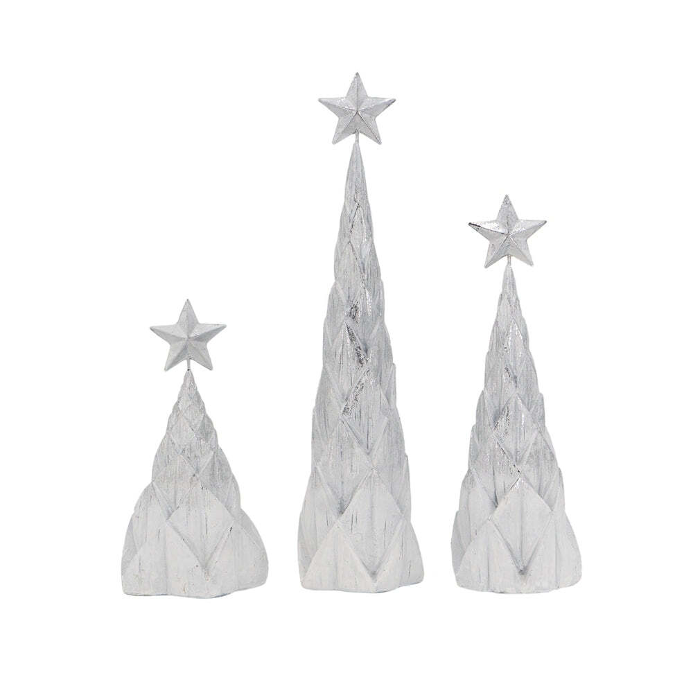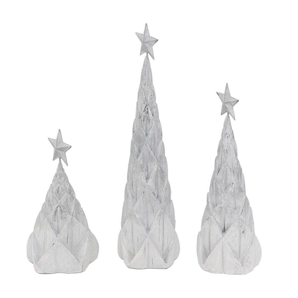 - Set of 3 Resin White/Silver Foil Christmas Trees with Star Top