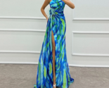 - Sexy Sleeveless Backless High Split Contrast Printed Chiffon Dress