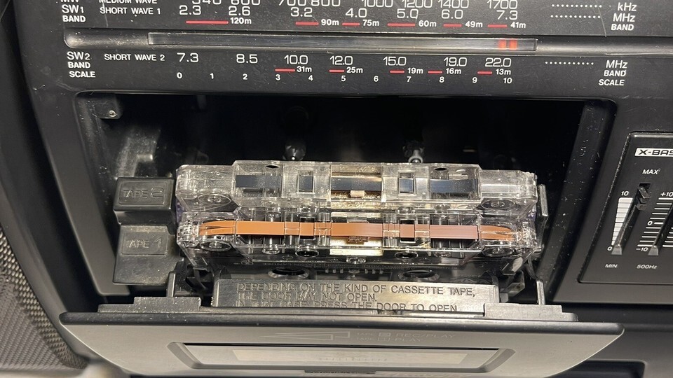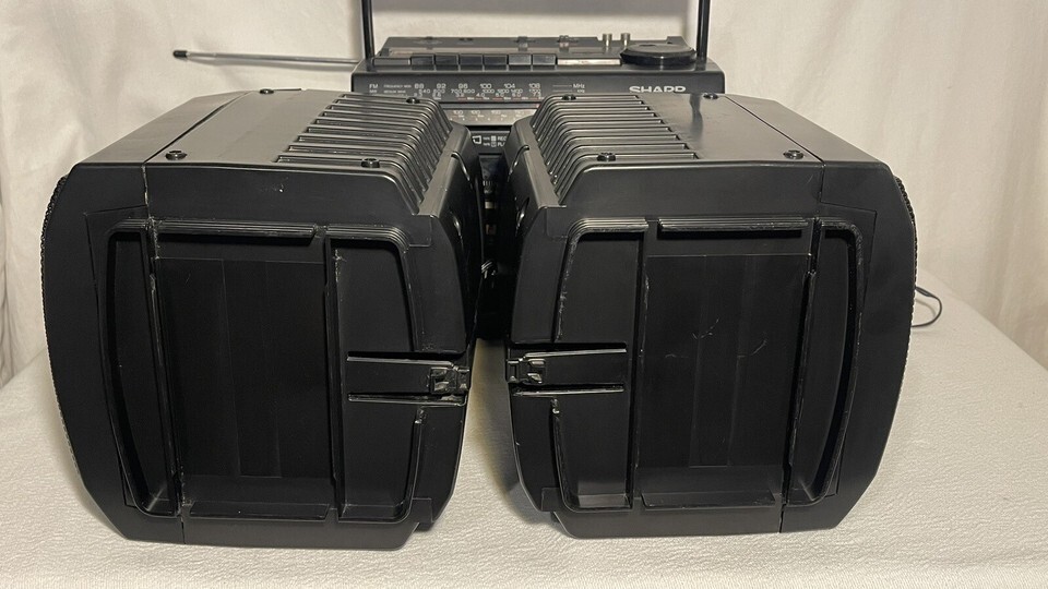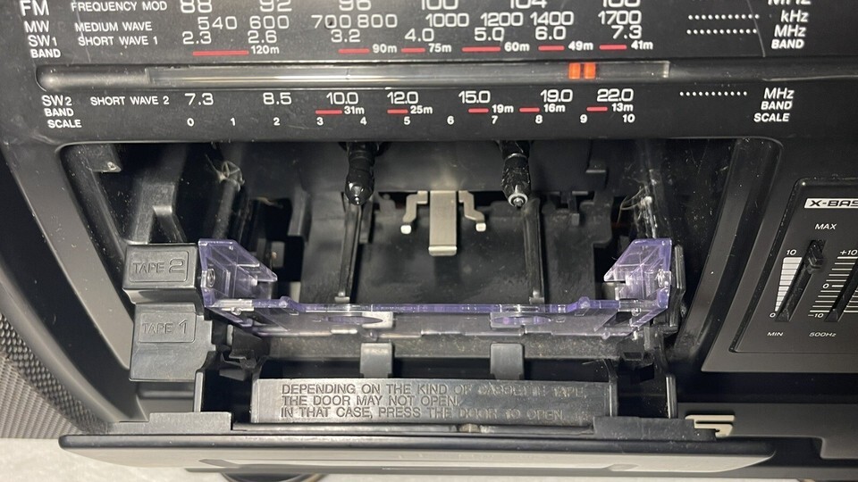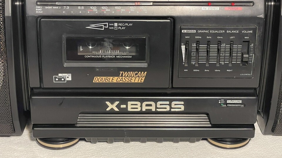 This Sharp WF-T380 Boombox is a must-have portable audio device for music lovers! It features both AM and FM bands, and comes equipped with a dual cassette player for your listening pleasure. The X-BASS technology provides a powerful, surround sound experience that will knock your socks off. With a sleek design and user-friendly interface, this boombox is perfect for any occasion. Whether you're hosting a party, going on a road trip, or just relaxing at home, the WF-T380 has got you covered. Don't miss out on this incredible audio experience!