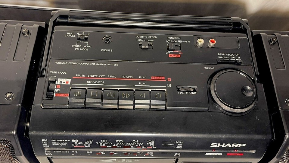 Primary image for SHARP WF-T380 AM FM SW RADIO DUAL CASSETTE SURROUND BOOMBOX X-BASS*See Video*