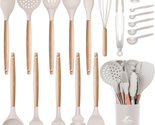 - Silicone Cooking Kitchen Utensils Set with Holder, Wooden Handles BPA Free Non T