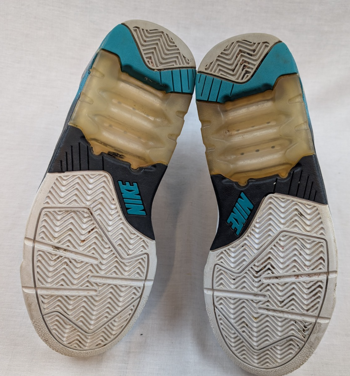 Size 10 Nike Air Force 180 Mid White Grey Emerald MISSING laces, inner sole 2012