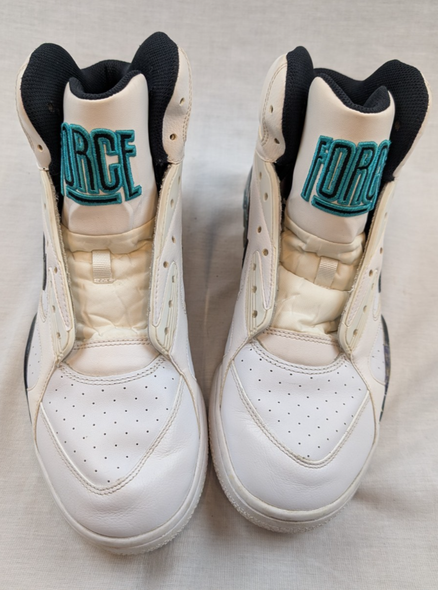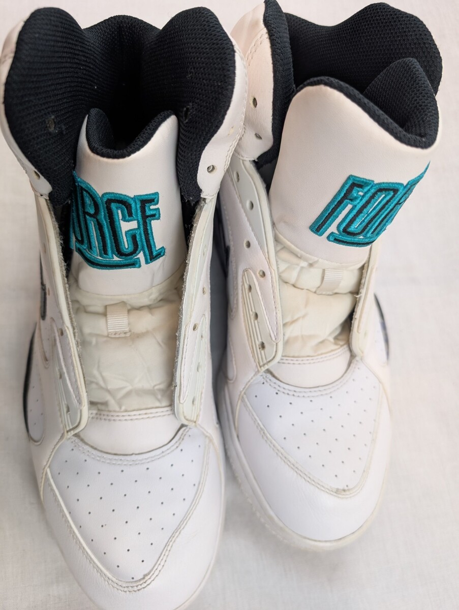 - Size 10 Nike Air Force 180 Mid White Grey Emerald MISSING laces, inner sole 2012