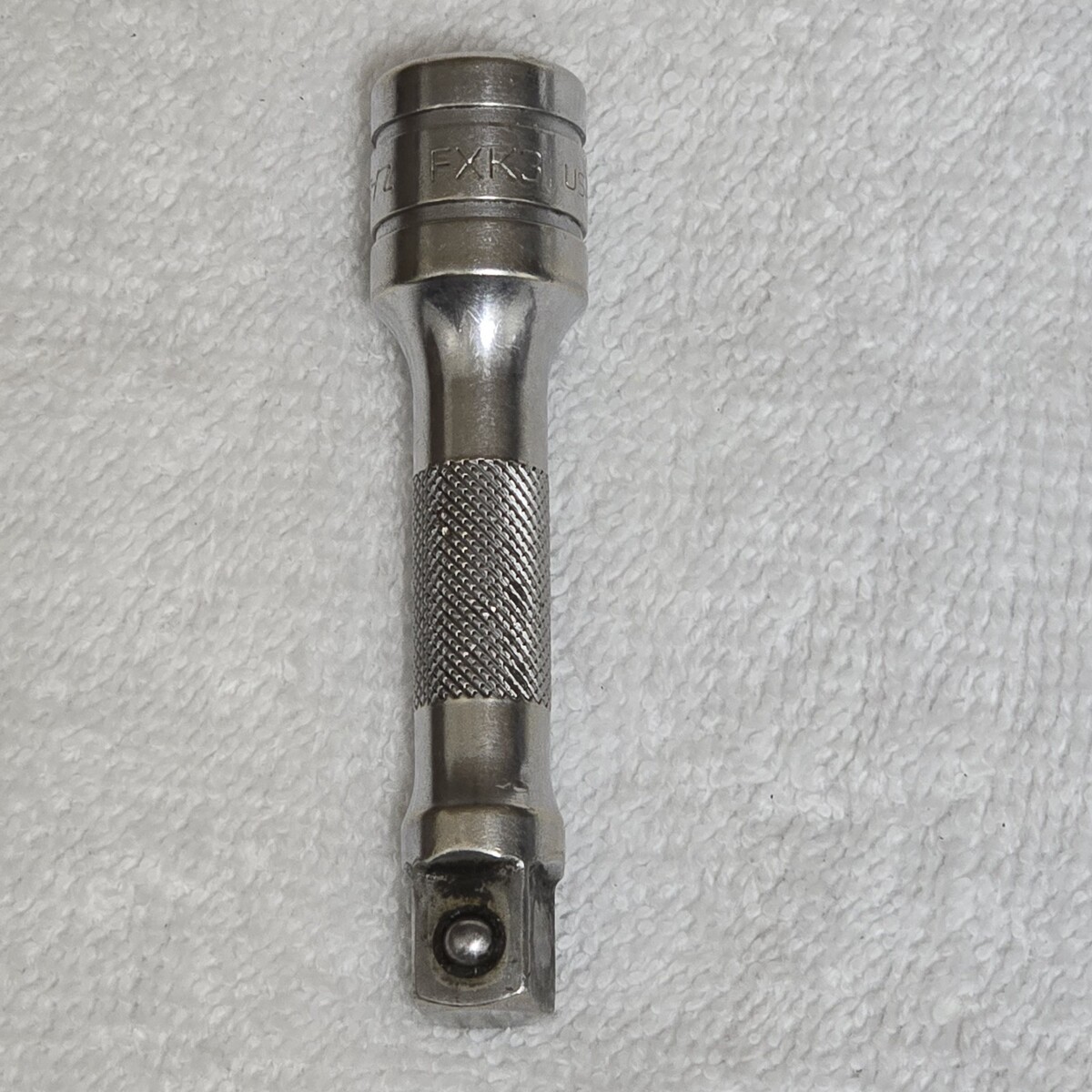Snap On 3/8" Drive 3" Chrome Knurled Extension. Part number: FXK3 ***Extension has normal minor wear - Please See Photos.*** SMOKE FREE HOME! SUPER FAST SHIPPING! 10-B