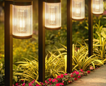 MODERN SOLAR PATHWAY LIGHTS OUTDOOR: Featuring a stylish stripe transparent shade, and upgraded brighter LED tungsten filament, our solar pathway lights showcase an outstanding look that is more beautiful and sturdy than other solar lights for outside. The solar garden lights emit an evenly bright and soft lighting, providing lighting and decoration for various outdoor spaces, such as gardens, lawns, and pathways. The solar lights will create a romantic and comfortable atmosphere for your wonderful night.
