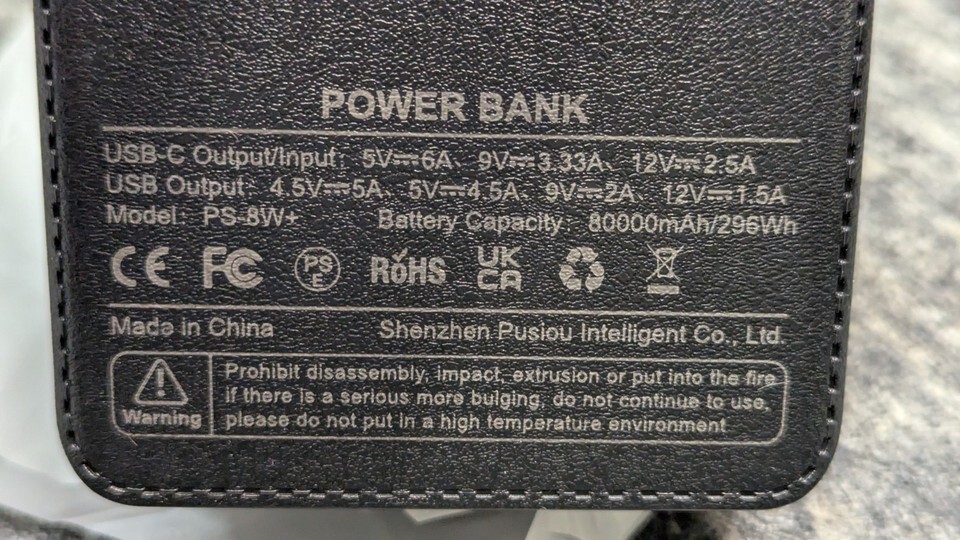 Solar Power Bank Battery Pack 80000 mAh / 296Wh PS8W+ Black Bundle New