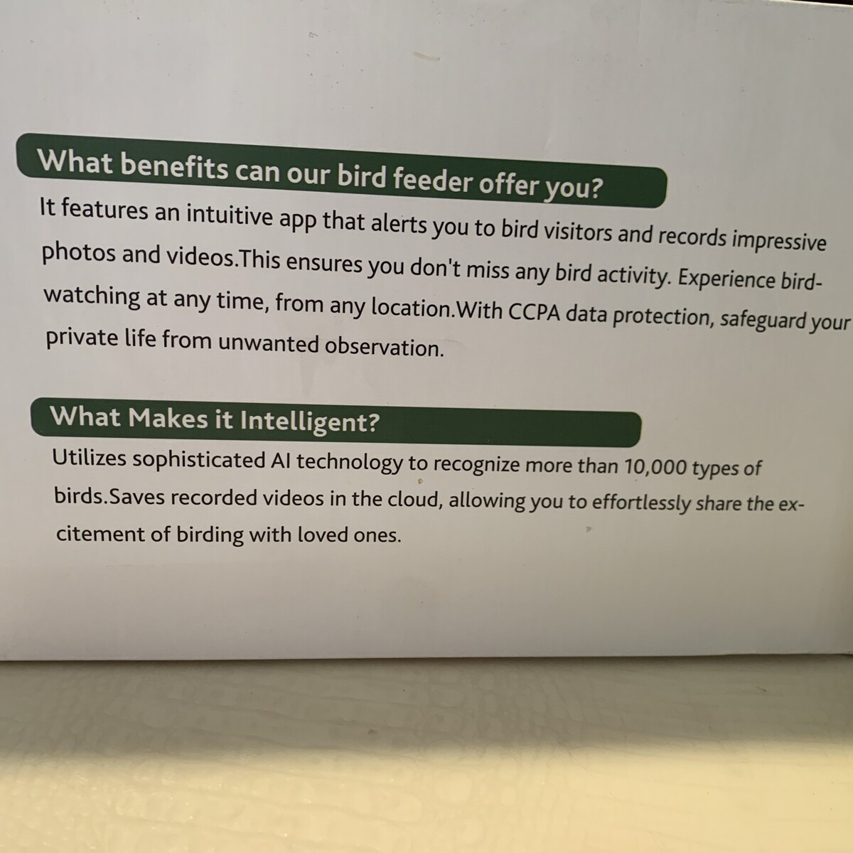 AI BIRD ALERTS 30-DAY CLOUD PLAYBACK: Get instant phone notifications from this ?bird feeder with camera. AI identifies species, while auto-overwriting cloud storage saves 30 days of visits ? relive finches or owls anytime.