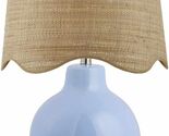 Key features of this lamp include a durable ceramic base, a rattan exterior shade, and a metal interior for enhanced light diffusion. With a 6-foot cord and an easy on/off switch, it's designed for effortless use. Accommodating one E-26 socket bulb up to 100W, it delivers soft, ambient lighting that's perfect for bedside tables, living room corners, or entryways. Available in blue, peach, and translucent colors, this versatile lamp adapts to your personal style while showcasing materials like ceramic, metal, and rattan for lasting durability.