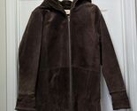 Excellent Condition St. Johns Bay Dark Brown Suede Leather Shearling Lined Hooded Jacket - Women's Tag Size S. Actual measurements: 42" chest, 30.5" length. Fits like a Medium. Stunning Condition. SMOKE FREE HOME! SUPER FAST SHIPPING!