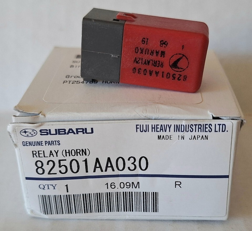 Horn Relay - Subaru (82501AA030) This is a 100% Genuine Subaru Part Genuine Subaru Parts Manufacturer:Subaru Part Number:82501AA030 Brand: SKU: 82501AA030 Other Names: Relay, PT254789 Horn Relay Description: All models. Impreza, Legacy. On dash panel. SVX. Condition:New Vehicle Fitment Year Make Model Body Trim Engine Transmission 1997 Subaru SVX L, LSi 3.3L H6 - Gas 1996 Subaru SVX L, LSi 3.3L H6 - Gas 1995 Subaru Impreza Base, L, LX, Outback 1.8L H4 - Gas, 2.2L H4 - Gas 1995 Subaru Legacy Base, Brighton, L, LS, LSi, Outback, Postal 2.2L H4 - Gas 1995 Subaru SVX L, LS, LSi 3.3L H6 - Gas 1994 Subaru Impreza Base, L, LS 1.8L H4 - Gas 1994 Subaru Justy DL, GL 1.2L L3 - Gas 1994 Subaru Legacy Alpine Sport, GT, L, LS, LSi, Outdoor, Sport, Sun Sport, Touring 2.2L H4 - Gas 1994 Subaru Loyale Base 1.8L H4 - Gas 1994 Subaru SVX L, LS, LSi 3.3L H6 - Gas 1993 Subaru Impreza Base, L, LS 1.8L H4 - Gas 1993 Subaru Justy GL 1.2L L3 - Gas 1993 Subaru Legacy L, LS, LSi, Sport 2.2L H4 - Gas 1993 Subaru Loyale Base 1.8L H4 - Gas 1993 Subaru SVX LSL 3.3L H6 - Gas 1992 Subaru Justy GL 1.2L L3 - Gas 1992 Subaru Legacy L, LS, LSi, Sport 2.2L H4 - Gas 1992 Subaru Loyale Base 1.8L H4 - Gas 1992 Subaru SVX LS, LSL 3.3L H6 - Gas 1991 Subaru Justy GL 1.2L L3 - Gas 1991 Subaru Legacy L, LS, LSi, Sport 2.2L H4 - Gas 1991 Subaru Loyale Base 1.8L H4 - Gas 1991 Subaru XT GL, XT6 1.8L H4 - Gas, 2.7L H6 - Gas 1990 Subaru Justy DL, GL 1.2L L3 - Gas 1990 Subaru Legacy Base, L, LS 2.2L H4 - Gas 1990 Subaru Loyale Base, RS, RS Turbo, Turbo 1.8L H4 - Gas 1990 Subaru XT GL, XT6 1.8L H4 - Gas, 2.7L H6 - Gas