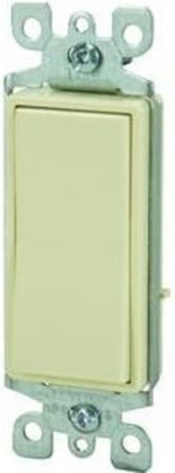 Install a reliable, code-compliant wall switch with the Leviton S11-5601-2IS Residential Grade Decora Rocker Switch ? a single-pole, 15-amp switch designed for standard lighting and outlet control in homes and light commercial spaces. Rated for 120/277 volts, this ivory switch delivers versatile performance suitable for both residential circuits and commercial lighting systems that operate at higher voltages.